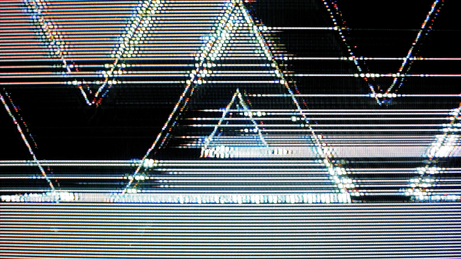 The final set of visuals were created for a track titled ‘Wake Up’ and they follow a figure walking through a glitched cityscape. The source content was created in Cinema 4D, using a free building pack by KitBash 3D. The final visuals were processed with the Tachyons+ Dreamweapon and filmed on a small Sony Trinitron CRT TV.