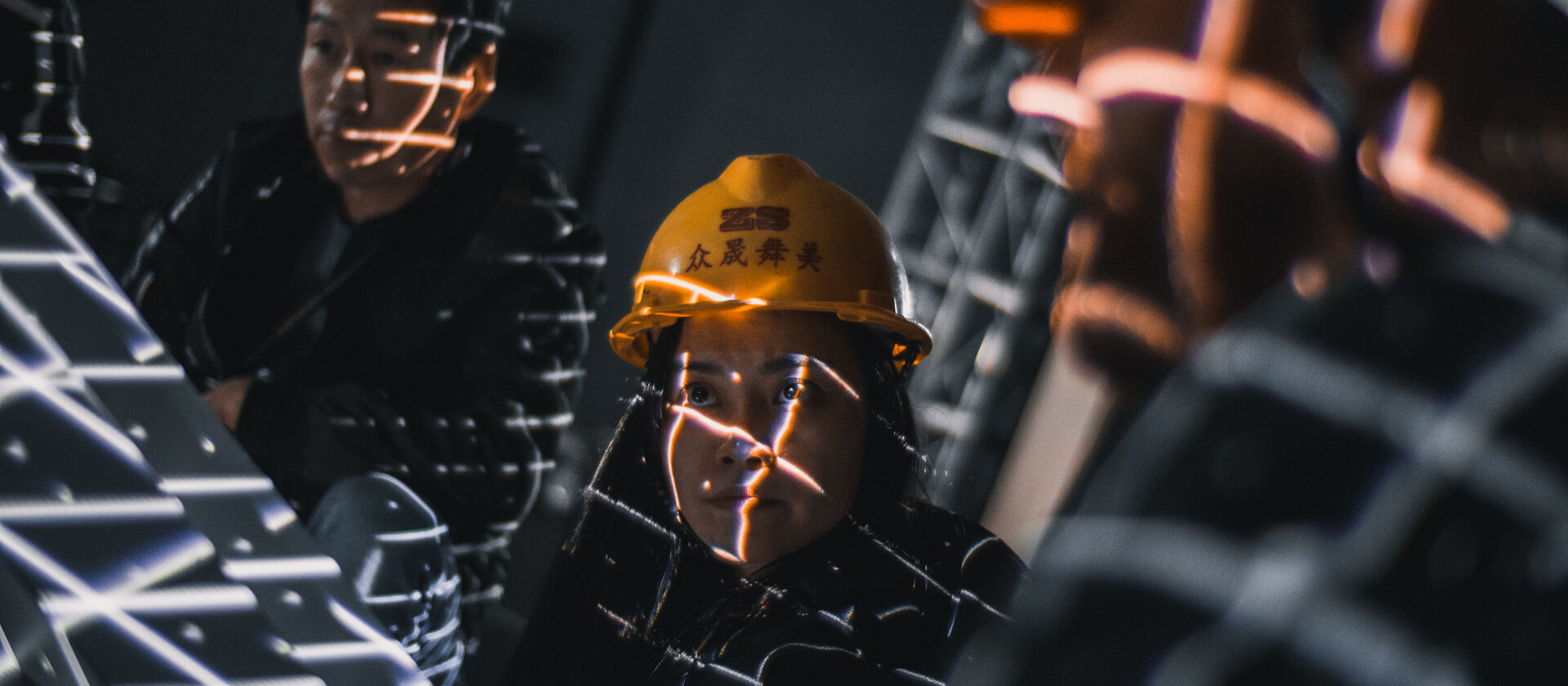 The ISO sculpture was built from steel plates and welded on site by our team in China. It took over eight people to lift the sculpture up onto the tripod base. Phil worked with the local projection team to align all the projectors once everything was built.